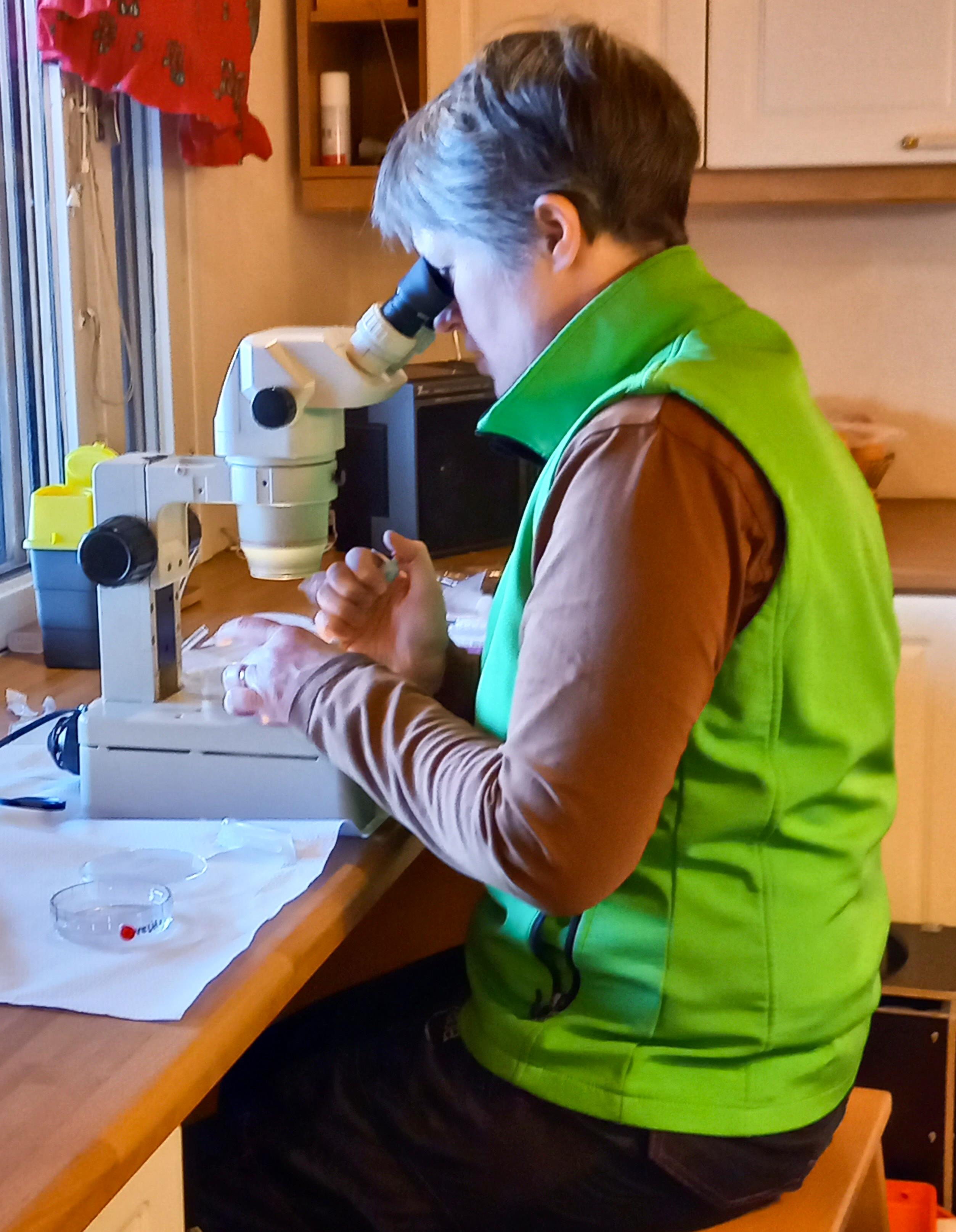 Eläinlääkäri Iris Kaimio mikroskopoi alkioita